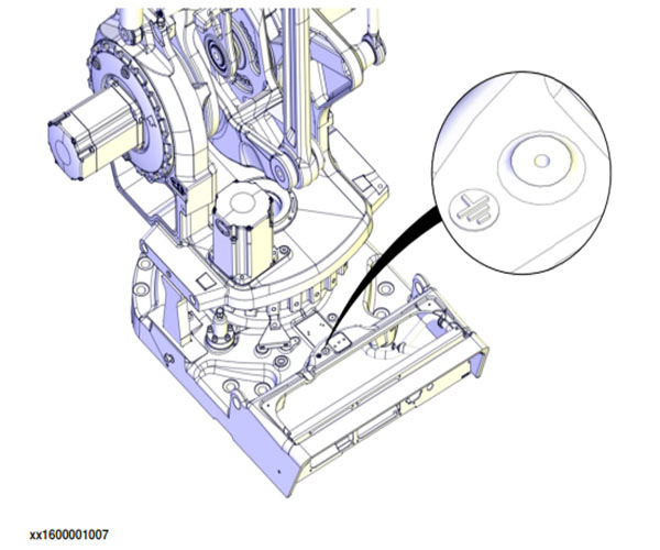 在機(jī)械臂基座上有一個(gè)接地/連接點(diǎn)。接地/連接點(diǎn)用于控制柜、機(jī)械臂以及任何外設(shè)之 間的可能補(bǔ)償。